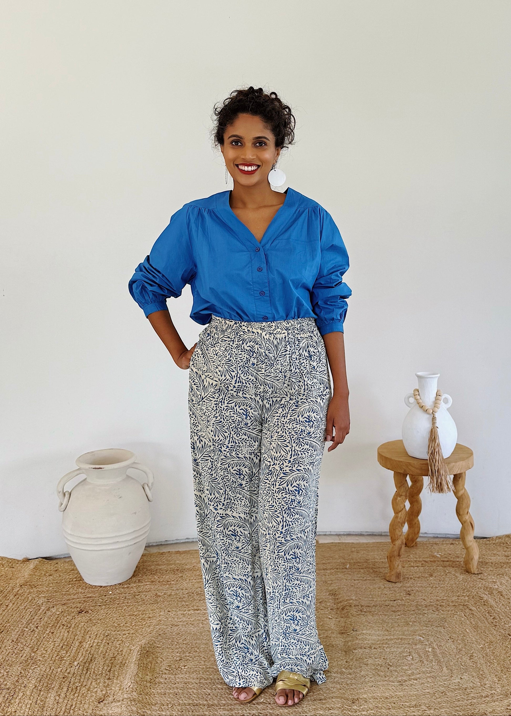 Soft cotton-viscose blend with pockets and an elastic waist. Airy wide-leg silhouette and print that brings a touch of Bali wherever you go.